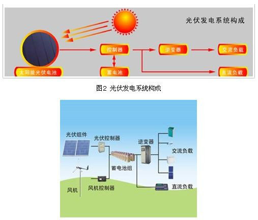 太阳能交流发电系统是由光伏组件、光伏控制器、蓄电池组和逆变器共同组成(如图1),,其中,逆变器是最重要的部分。逆变器是一种电源转换装置,其主要功能是将蓄电池的直流电逆变成交流电,图2表示了逆变器在太阳能交流发电系统中的作用。